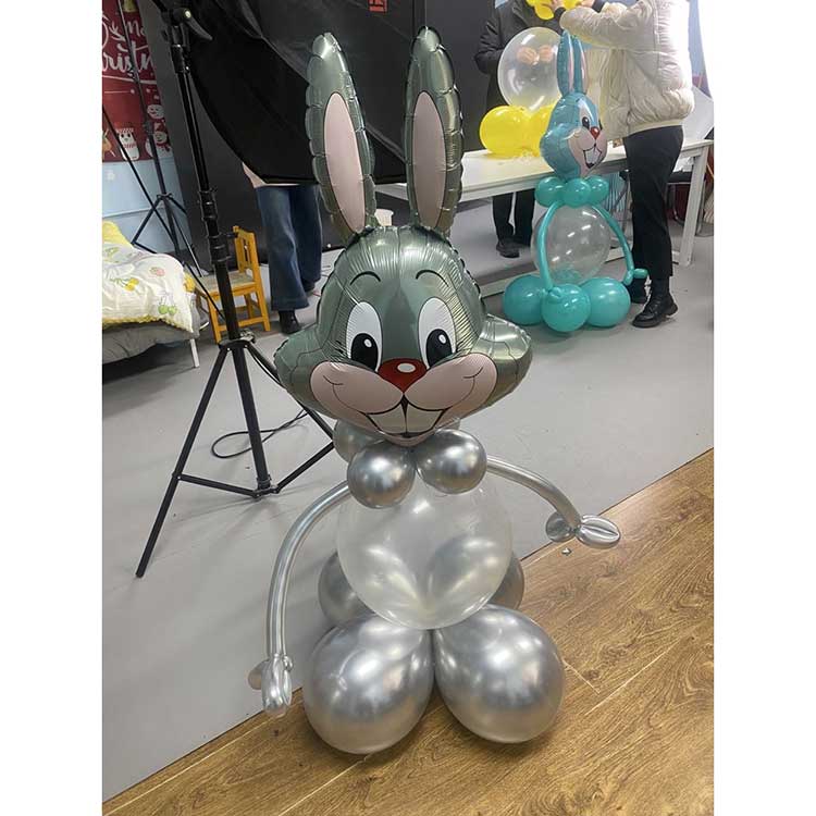 Ballon en aluminium Bugs Bunny utilisé pour les activités sur le thème de Pâques. Les longues oreilles, le sourire espiègle et les yeux vifs de Bugs Bunny, ainsi que leurs couleurs vives et riches, attireront l'attention des enfants et rehausseront l'atmosphère festive. Ensemble de produits de ballons en aluminium Bugs Bunny. La combinaison de ballons en aluminium et de ballons en latex crée un effet 3D, déclenchant une atmosphère joyeuse. Le ballon Bugs Bunny est disponible en quatre couleurs : rose, bleu, gris et vert. Chaque ballon en aluminium est associé à un ballon en latex de la même palette de couleurs. Les produits sont très durables. Les ballons en aluminium utilisent un processus de scellement épais, leur permettant de rester gonflés pendant 2 à 3 semaines. Les ballons en latex sont également très épais ; un ballon de 12 pouces utilise 2,8 g de latex et peut rester gonflé pendant environ 4 semaines. Tous les matériaux utilisés sont sans danger pour les enfants, inodores et exempts de substances nocives, ce qui les rend sans danger pour les enfants. Le ballon en aluminium Bugs Bunny n'est pas seulement pour Pâques ; ils peuvent également être utilisés comme décorations de table ou accessoires photo pour les anniversaires d'enfants, créant ainsi un espace amusant et ludique. Ils peuvent également être offerts comme cadeaux de bienvenue pour la célébration des 100 jours de bébé. La personnalisation est disponible ; . Newshine en tant que fabricant de ballons avec des années d'expérience dans la production de ballons. Nous pouvons répondre à tous vos besoins créatifs.