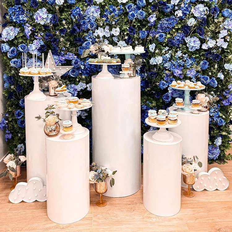 La table à dessert à base cylindrique sert à la fois de récipient et d'ornement. Habituellement, ils se présentent sous diverses combinaisons : combinaisons de 3 pièces, combinaisons de 5 pièces, combinaisons de 7 pièces, etc. La combinaison la plus courante est celle de cinq pièces. Des tubes cylindriques indépendants de différentes tailles peuvent être disposés de manière flexible et constituent une partie importante de la scène. Dans le même temps, nous proposons également une personnalisation de la taille et de la forme. De plus, ils s'agenceront à vos décorations de fête.