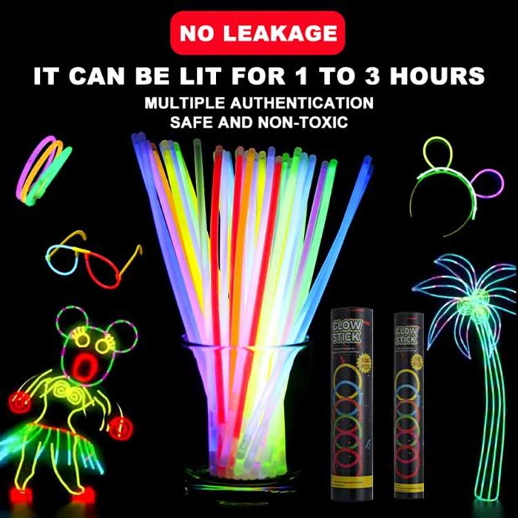 Le bâton lumineux a été amélioré pour devenir une couleur plus brillante et plus accrocheuse. Il peut rester allumé pendant 1 à 3 heures. Le matériau fluorescent utilisé dans les bâtons fluorescents a une concentration élevée, ce qui donne une lueur longue durée et de haute intensité.