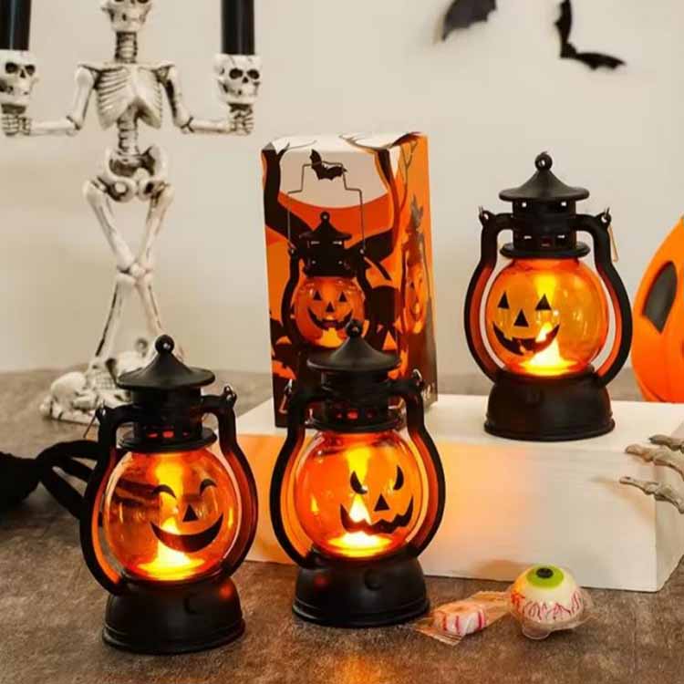 La lanterne de citrouille d'Halloween est l'une des décorations d'Halloween les plus emblématiques. Fabriqué à partir de plastique animal épaissi, la lanterne présente des dessins sculptés comme des visages fantômes et une source légère à l'intérieur, créant une atmosphère mystérieuse, étrange et amusante.