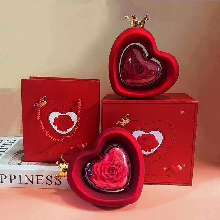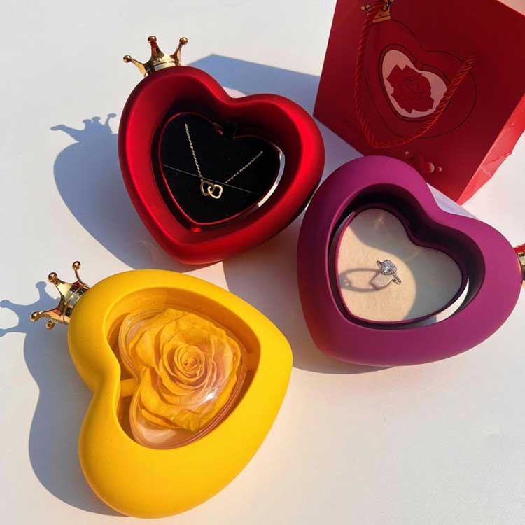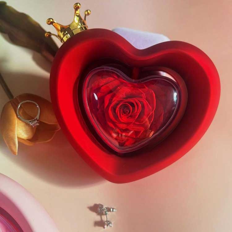 La boîte à bijoux rose en forme de cœur utilise des fleurs préservées de qualité A, dont la couleur et la texture sont impossibles à distinguer des fleurs fraîches.