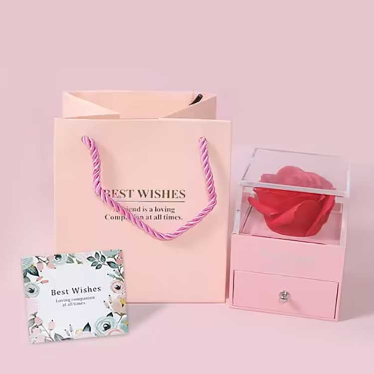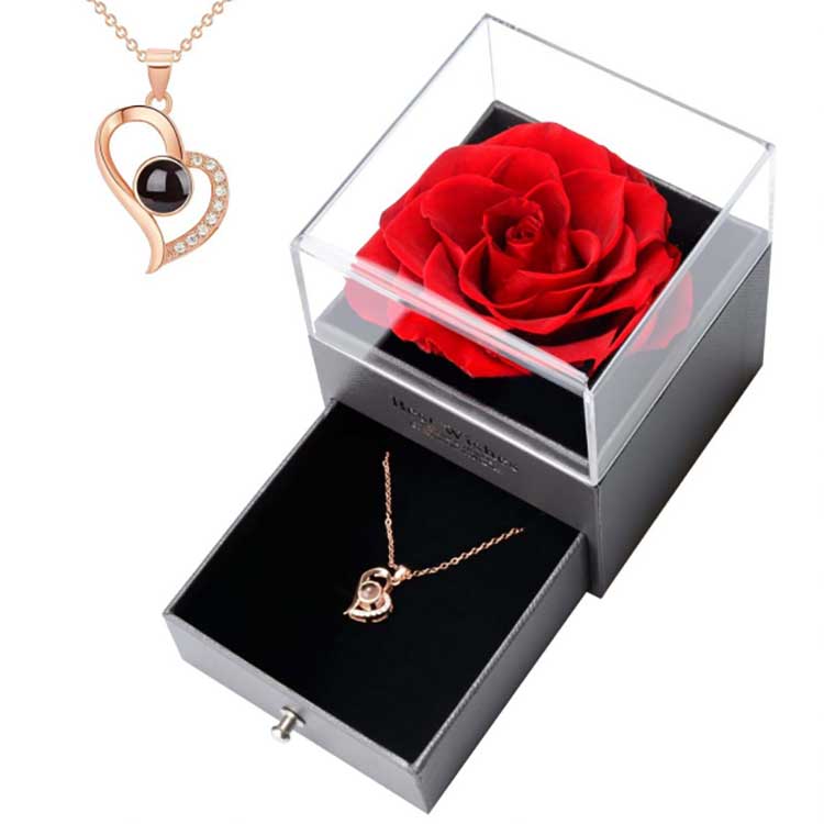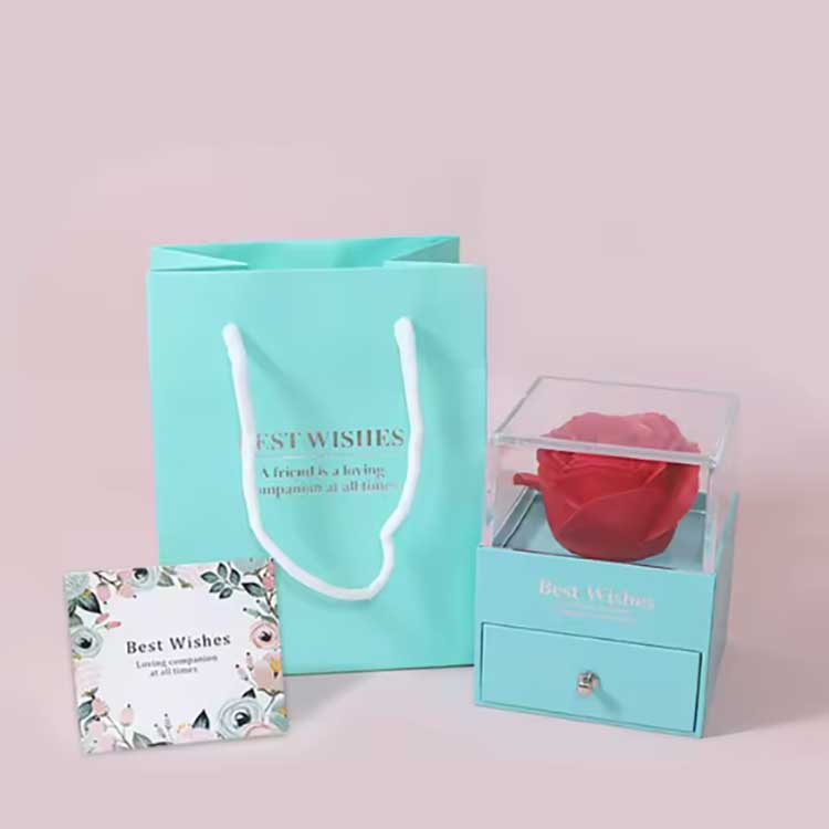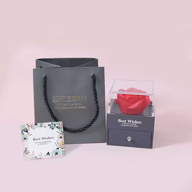 Le coffret cadeau Fleur Immortelle est un produit populaire. Ses accessoires sont fabriqués à partir de matériaux de haute qualité. Chaque coffret cadeau contient une rose vive et des bijoux exquis. Lorsque vous les recevez, vous pouvez les utiliser directement sans avoir à les installer vous-même. Ils peuvent exprimer pleinement vos sentiments à vos amis ou à vos proches, rendant votre cérémonie pleine de romantisme et de surprise.