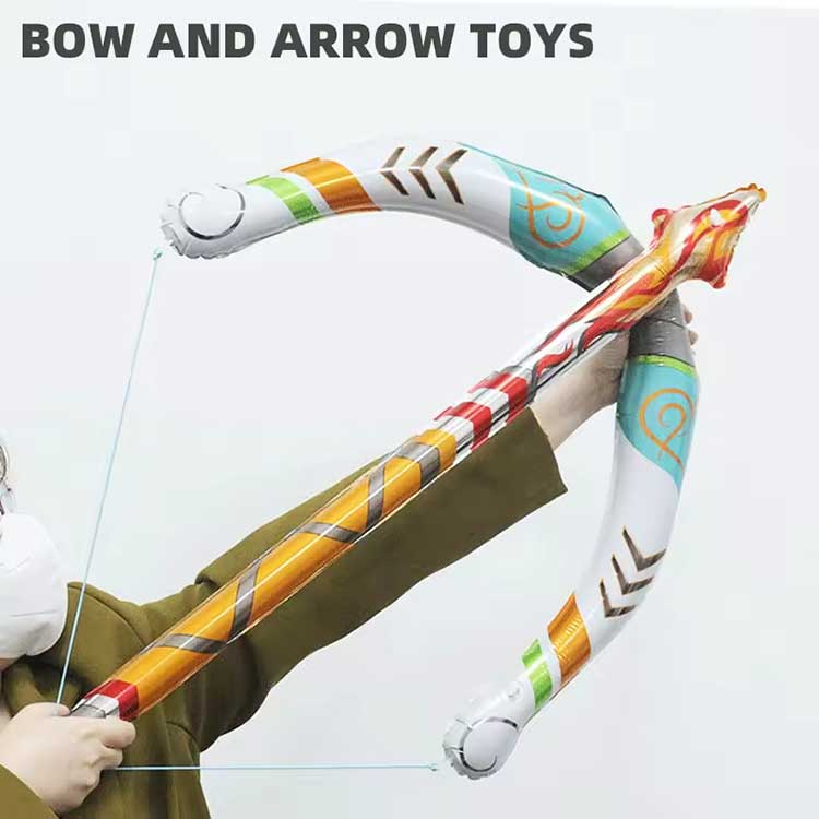 L'ensemble de jouets gonflables arc et flèche est fabriqué en PVC, capable de résister au jeu enthousiaste des enfants. Il se gonfle rapidement et conserve sa forme longtemps. Comprend trois épées pour une interchangeabilité plus facile.