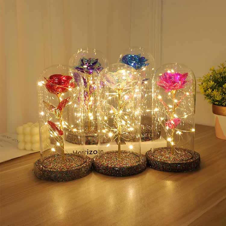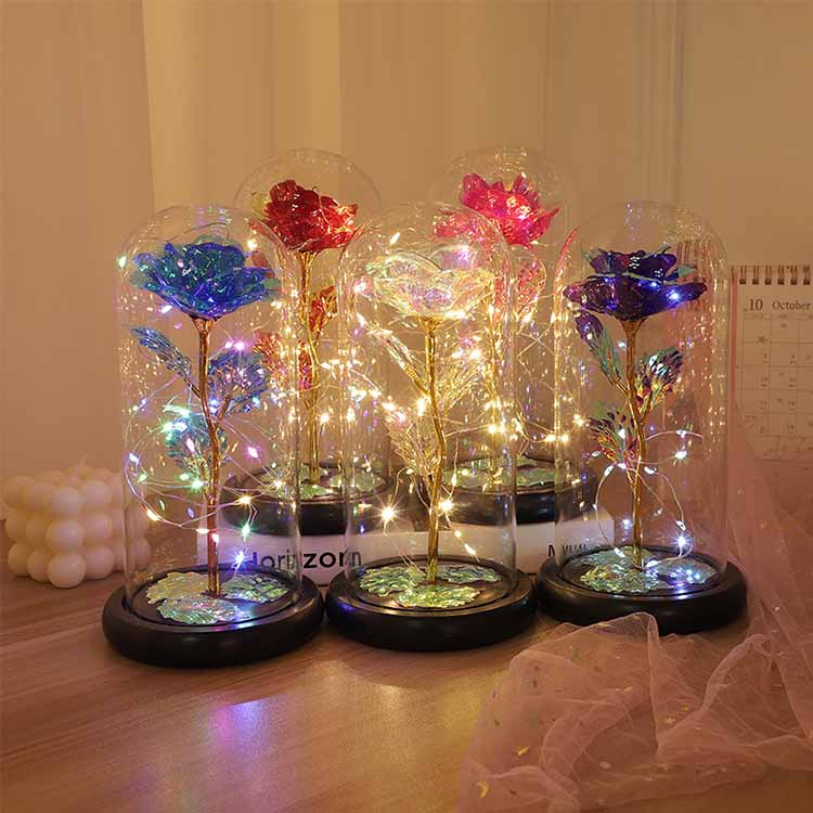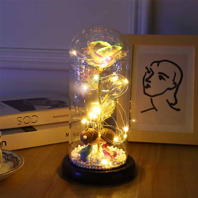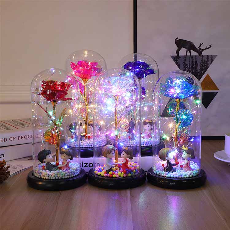 Le verre LED 24K est monté à l'intérieur du boîtier de protection. Nous avons de nombreuses poupées et jouets. Les clients peuvent choisir leurs poupées préférées et la couleur des fleurs qu'ils aiment. Nous pouvons les personnaliser selon vos exigences.