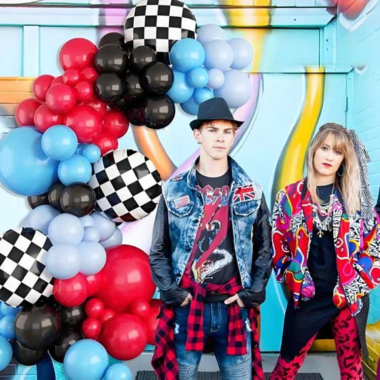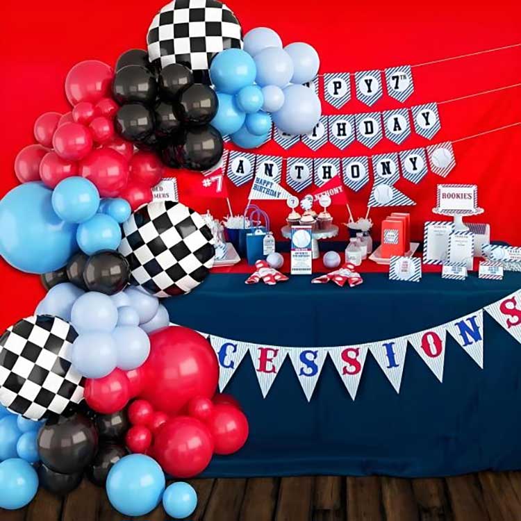 Le kit de décoration d'arche de ballons sur le thème de la course se compose de 88 composants. Il comprend 80 ballons en latex, 6 ballons en aluminium, 1 chaîne de ballons et 1 point de colle.