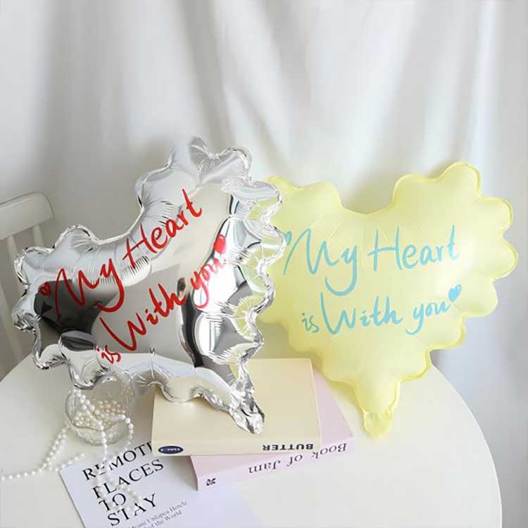1. Conception unique : les bords ondulés ajoutent une touche créative à la forme classique du cœur, le faisant se démarquer d'un ballon standard.